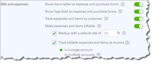 Some of the options in the image above are self-explanatory, like including a Product/Service table on transactions so you can itemize what you sell. Sales tax (not shown here) and billable expenses are more complicated. Let us help you get these tools right from the start.